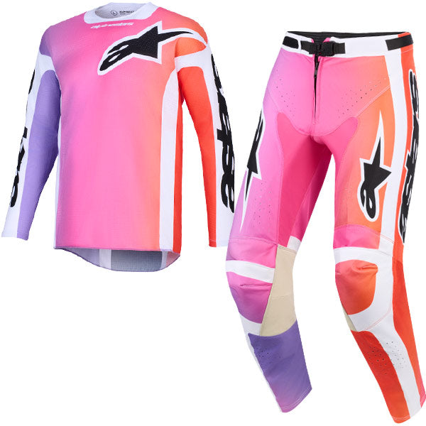 Developed and tested on some of the toughest terrains around the globe, the Racer Air gear is ideal for off-road riding on warmer days, thanks to the gear's full airflow construction, ergonomic pre-curved pattern, and its moisture-wicking, lightweight, and durable technical materials. Designed to offer optimal levels of airflow, comfort, and durability needed by racers and everyday riders, the Racer Air Riway Jersey and Pants come in a range of distinctive and aggressive color combinations created to match the Racer Air Riway Gear and Alpinestars' MX Gloves’ line for a total performance look and feel.